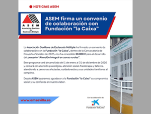 Desde la Asociación Sevillana de Esclerosis Múltiple (ASEM) se ponen en marcha los Talleres de Salud Emocional y Habilidades Sociales, un espacio presencial pensado para fortalecer el bienestar emocional, mejorar la comunicación y favorecer las relaciones personales en un entorno seguro y de apoyo. (más…) ...
