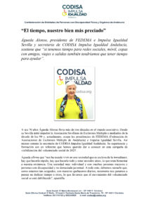 En este artículo de Codisa Impulsa Igualdad Andalucía, podrás conocer un poco a Águeda Alonso,  Presidenta de FEDEMA, y lo que es el voluntariado. «Ser voluntario no tiene que implicar dejar de vivir, solo darás una pequeña parte de tu tiempo y si todos hacemos lo mismo, conseguiremos una sociedad más justa y amable y redundará en beneficio de todos”.