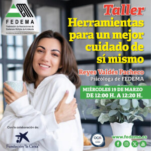 En FEDEMA hemos llevado a cabo talleres dentro del Programa ‘Apóyate en mí’ de Fundación «la Caixa», cuyo objetivo es ofrecer apoyo, recursos y herramientas prácticas tanto a personas con esclerosis múltiple como a sus familiares y cuidadores.